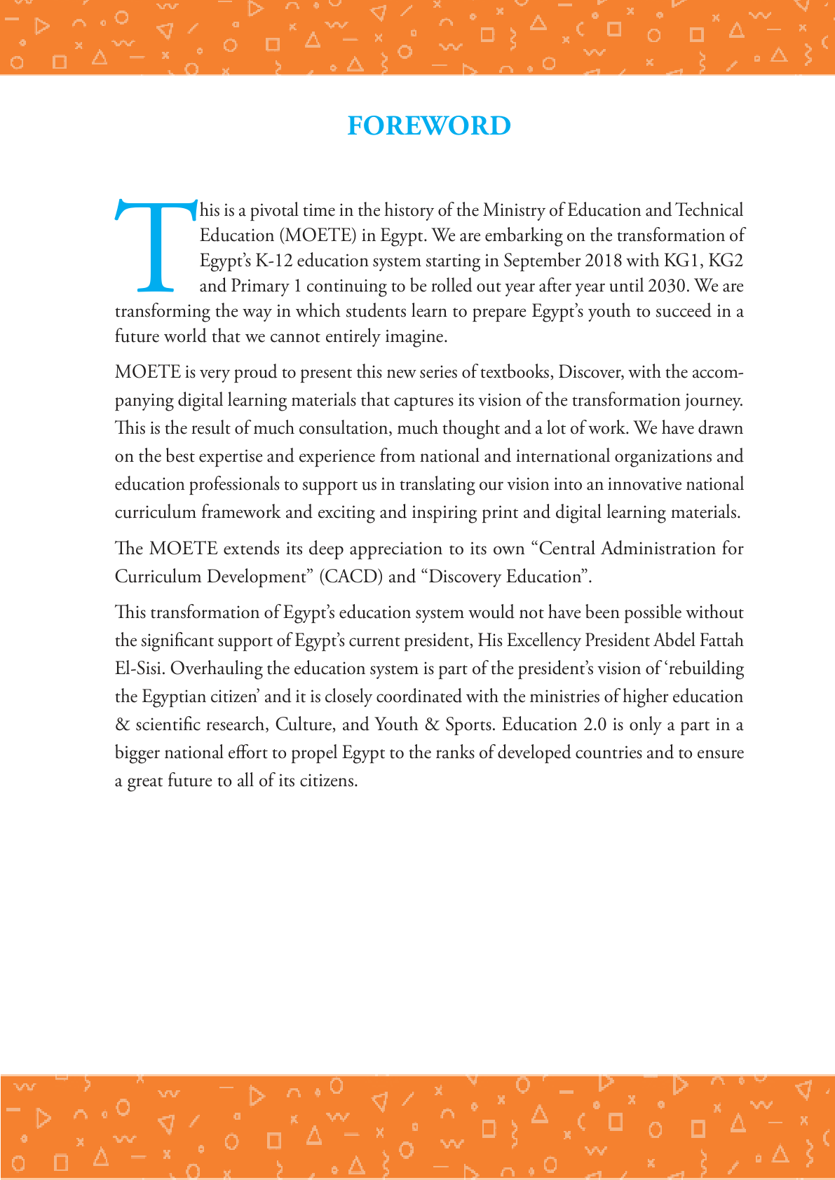 We are embarking on the transformation of Egypt’s K-12 education system starting in September 2018 with KG1, KG2 and Primary 1 continuing to be rolled out year after year until 2030.